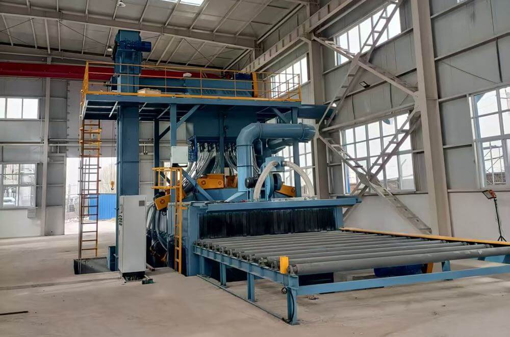 A Custom Through Feed Shot Blasting Machine Is Automated Surface Preparation Equipment Designed For Continuous, High-Volume Cleaning And Descaling Of Long Profiles Like Steel Plates, Structural Shapes (H-Beams, Angles), Or Tubes. Workpieces Pass Continuously Through A Sealed Blast Chamber On A Specialized Roller Conveyor . Strategically Placed Blast Wheels Ensure Uniform, High-Efficiency Coverage, Removing Rust And Mill Scale To Achieve A Superior Surface Profile (E.G., SA 2.5). This Customization Optimizes Throughput And Improves Coating Adhesion And Product Quality For Steel Fabrication.